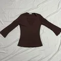 Top wanita warna coklat dengan model V neck. Bahan knit stretch, nyaman dipakai harian. Detail ukuran: Panjang 55 cm Lingkar dada 70 cm Lingkar waist 60 cm Panjang lengan 42 cm Kondisi no minus. Nego santai, silakan chat.