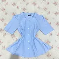 top kemeja babyblue slimfit casual coquette vintage y2k