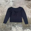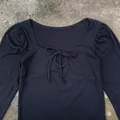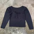 top wanita lengam panjang leher kotak pita ld 76-90 pj 48 no minus warna pekat preloved pribadi butuh cuci saja minat chat, fast respon lok bandung