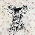 top zebra tanktop black printed vintagw y2k pinggang kerut