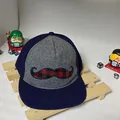 DETAIL PRODUK: - Model: Snapback - Desain: Motif kumis (mustache) kotak-kotak - Warna: Abu-abu & biru navy - Bahan: Felt / flannel (terasa hangat & tebal) - Kondisi: PRELOVED KONDISI BARANG: - Struktur topi masih kokoh - Bordir/aplikasi motif rapi - Tidak berlubang - Ada tanda pemakaian ringan wajar (lihat foto detail) - Masih sangat layak pakai