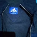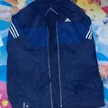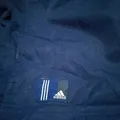 2. Logo Adidas putih di dada kiri dan detail tiga garis khas Adidas di lengan.