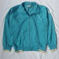 Tracktop Asics Teal/Turquoise Size S fit M | PxL 60x58 Sport vibes, teal track jacket, bold color, ribbed cuffs, clean piping, dual pockets, asics embroidery on sleeves. Dont Miss Out !