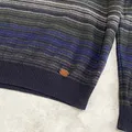 Sweater rajut motif garis navy–olive–grey khas Trussardi Jeans. Model V-neck dengan elbow patch dan logo kulit kecil di bagian bawah. Bahan halus, ringan, dan nyaman dipakai — classy casual look khas Italia. 📏 P 68 LD 116 🇮🇹 Brand: Trussardi Jeans
