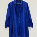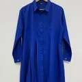Warna: Biru elektrik Bahan: Katun halus (ringan & adem) Model: Kancing depan (tertutup placket) Detail: -Pleats/lipit di bagian kanan bawah -Kantong dada kiri Kerah: Kerah kemeja (shirt collar) Fit: Longgar, nyaman dipakai