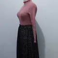 1 set atasan & rok (roknya masih baru ya) Atasan turtle neck, bahan rajut, warna pink, all size Rok tutu dengan motif leopard, LP maks.100cm, pinggang full karet