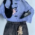 Unbrand blue Striped shirt cheongsam boxy