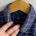 Uniqlo Button Down Flannel Shirts Plaid Check Navy Casual St
