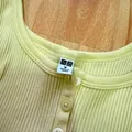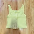 "Uniqlo Ribbed Henley Neck Tank Crop Top in Pastel Yellow Size M Worn a Few Times Still like New"