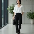 Uniqlo White Blouse V-neck (Top/Outer)