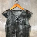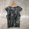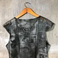 Unknown - Y2K Women Mesh News Paper Pattern Tops Condition 9/10 Polyester Material Size S (Check Measurements) No Flaws Chest : 50 cm Shoulder: 33 cm Length : 58 cm Happy Shopping