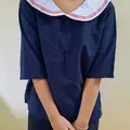 Bahan baju tidak panas serta memiliki kerah bentuk sailor yang unik. Details : ada defect bekas setrika dibalik kerah sedikit. Bust : 110cm Length : 59cm