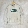Hoodie Vans warna abu muda (heather grey) dengan logo besar khas Vans di dada.