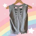 pre-loved by Ribka Vest Knit - Top - Atasan Baju Wanita LD : +- 72cm panjang baju : +- 49cm fit to M warna Grey bahan Katun, tidak panas hanya 1 size, 1 warna masih bagus, kondisi baju bersih, tanpa noda model sobek natural yuk diorder