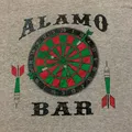This vintage Jerzees tee pays homage to the legendary Alamo Bar Dart Team. On the front, a modest chest print declares team pride, while the back bursts with a bold dartboard graphic and ALAMO BAR typography. Crafted from heavyweight premium cotton in a classic heather grey, single-stitch collar, a rare find for those who appreciate the grit, charm, and authenticity of true barroom nostalgia.