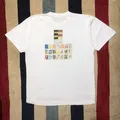 This Vintage 2001 Roland Garros T-Shirt reads less like merchandise and more like a curated exhibition from Parisian tennis history. On the front, the understated Roland Garros logo sits quietly on the left chest. Turn it around and the story unfolds: a full-scale poster from the 2001 tournament anchors the design, framed below by a meticulous grid of 20 miniature poster reproductions from past editions.