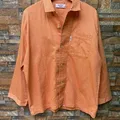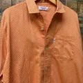 bahan 100% katun yang ringan dan lembut. Desain long sleeve dengan kancing depan penuh dan kerah klasik timeless. Motif polkadot putih di atas dasar oranye cerah bikin look retro dan playful.
