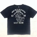 History never looked this badass. This SMACK Aspiration vintage USAF Vietnam War Backhit T-shirt is a relic with attitude. Crafted from heavyweight premium cotton in battle-worn washed navy. But it’s the back that hits hard: a striking map of Vietnam anchored by the hauntingly iconic line: “When I die, I’ll go to heaven because I have spent my time in hell".
