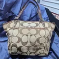 Vintage Coach F14659 Leah Signature Shoulder Tote Handbag Brown