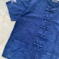 Vintage Dragon Back Print Denim Cheongsam Shirt