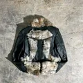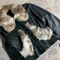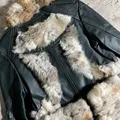 Vintage Furry Real Leather Jacket Y2K Style