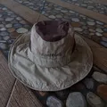 READY,vintage Mont-bell jungle hat in cream and brown.