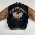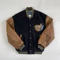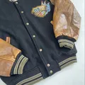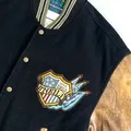 💥 Varsity classic vibes + leather sleeve coklat yang makin cakep kalau dipakai!