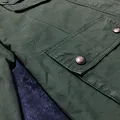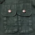 The Sloane Jumper Vintage Hunting Jacket speaks in accents of rugged aristocracy: dark green canvas that’s weathered but not weary, paired with a deep brown corduroy collar lining that feels like the warm nod of an old English novel. Five flap pockets—three commanding the lower front and two charmingly stacked on the left chest—suggest you carry stories, not just things.