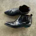 Vintage Texas Road Cowboy Black Leather Boots Size 43