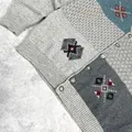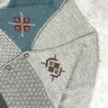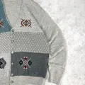 141842 Cardigan rajut motif etnik kombinasi abu & biru khas era 80–90an. Desain patchwork unik dengan pola geometris simetris. Rajutan tebal, lembut, dan hangat — cocok untuk gaya vintage casual. 📏 P 70 cm | LD 120 cm 🧶 Wool blend knit