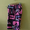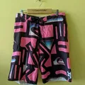 Vintage Y2K Quiksilver Men's Pink Geometric Board Shorts
