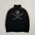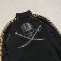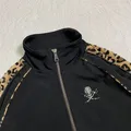 A true y2k style by hiromu takahara - roen skull track jacket features black colour,velvet leopard accent,skull studdetto accent,im pretty sure this one its too dope 🥶