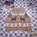 Jenis : Vintage Classic Reindeer with Snow Flakes Graphics Pattern Knit Shawl Collar Thick Cotton Cardigan.