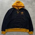 Vtg 90s Adidas hoodie in black colour with yellow accents