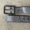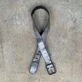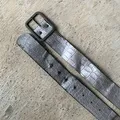 Vtg gray leather stel buckel belt