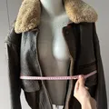 VTG LEATHER BOMBER JACKET ATTACHABLE FUR COLLAR SIZE L LENGTH 67
