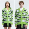 Welldone Mohair Stripe Knit Cardigan Green