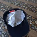 READY,white and blue five-panel hat with black brim and "FASTCO" logo patch.