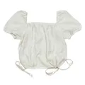 ✰ bust/length: 100/47 ✰ brand: - desc: puff-sleeve / off-shoulder blouse with tie details defect: slightly yellowish tone due to age