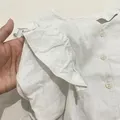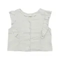 ✰ bust/length: 100/48 ✰ brand: - desc: lightweight linen top with cute ruffle sleeves defect: warnanya udah sedikit abu2