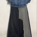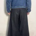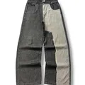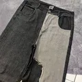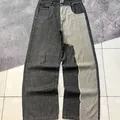 TWO TONE BAGGY UNIQUE JEANS Size 33 Linggkar pinggang : 86 Lingkar paha : 70 Panjang : 112 Open leg : 28 Free Sticker Note : Size chart diatas , warna real pict foto try on, perbedaan warna karna ringlight bukan efek!