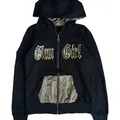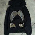 Y2k glam girl wings beaded detail zipper hoodie