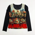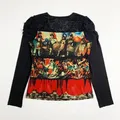 Y2k Mesh Top Art Graphic Multifabric Longsleeve
