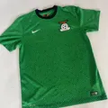 Jersey home Zambia musim 2014 warna hijau dengan pattern wave khas. ORIGINAL Nike Dri-FIT dengan crest bordir & patch authentic. Kondisi NEAR PERFECT, sangat jarang dipakai, tanpa cacat (no pull, no stain, no hole). Warna dan bahan masih fresh.