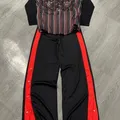 Only set 2 pcs Zara silk striped blouse Size M(Bust 110-115cm Length 62cm) Zara snap button track trousers Size 26-27 (waist 68-72cm Length 105cm) Authentic like new condition